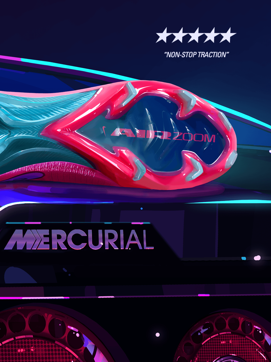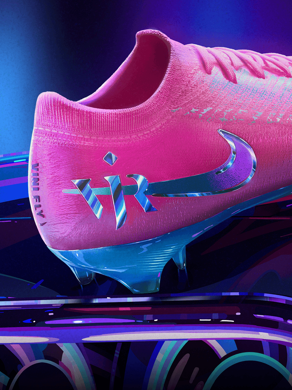 We cast Vini Jr as the driver in a high-octane, petrol-fuelled getaway film. We then leaned into the raw visual codes of car culture - neon haze, souped-up engines, street racing, drifting at full throttle.